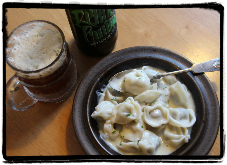 Kun pelmenit olivat kiehuneet 8 minuuttia nostelin ne ”liemen” sekaan, pyöräytin kaikki sekaisin ja ruoka oli valmis. Kylkeen kävi todella hyvin Metsän Henki… en varmaan muuten olisi tästä valmisruokaseikkailusta kirjoittanutkaan, mutta mielestäni oluen ja ruuan pari oli todella onnistunut.