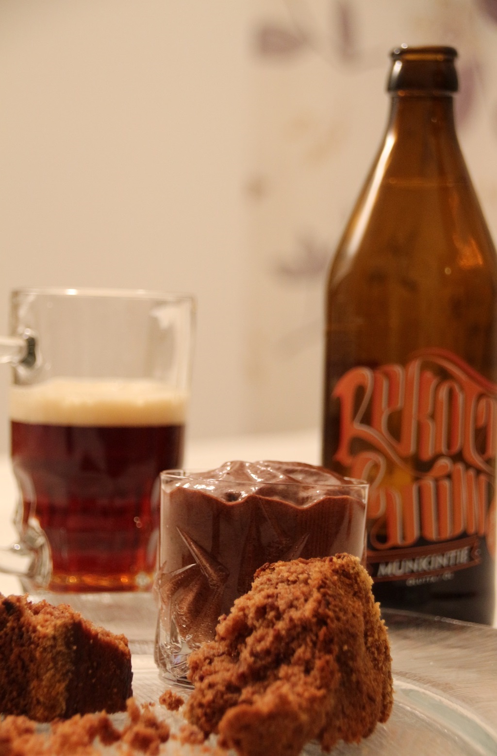 Mehän tietenkin heti miettimään, että jos kaffen sijaan lasissa on esim Alkoissa myytävää Munkintie –olutta, niin mitenkäs se sitten toimii. Munkintie on makea, tumma, vahva ja mausta voi löytää vivahteita rusinaan, luumuun yms. Siis sopiva kumppani taatelikakulle jo sellaisenaan. Lisäsimme herkutteluhetkeen vielä suklaamoussen ja kolmen yhteys oli täydellinen.