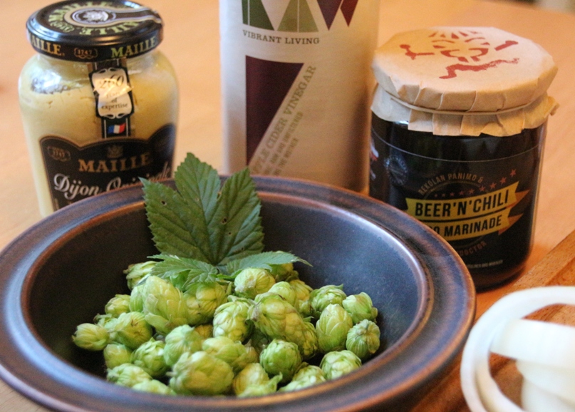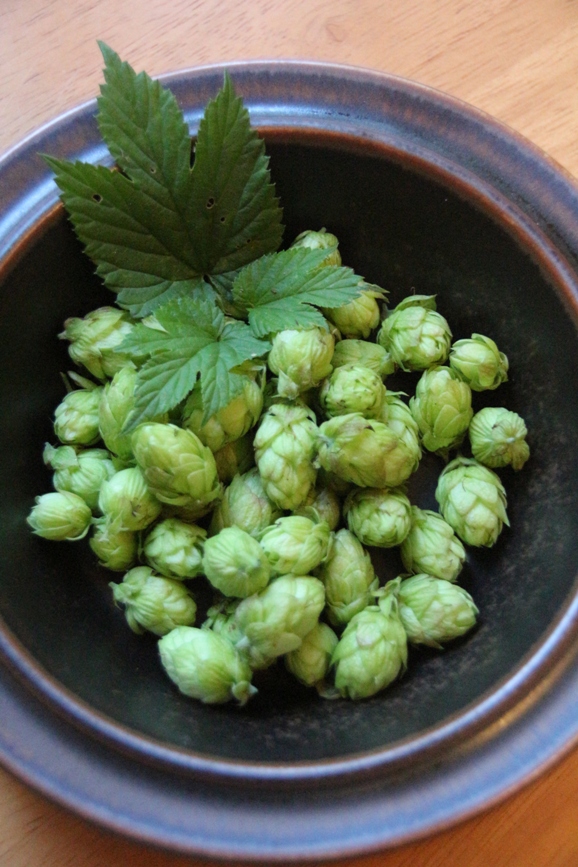 Keväällä nautimme humalanversoja ja nyt sadonkorjuuaikaan, kun kaverimme toi kasvattamiaan humaloita meille, kokeilimme humalankäpyjen friteeraamista.