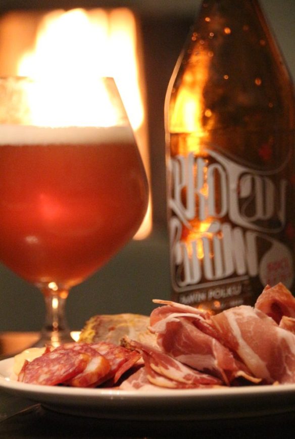 Jos lautasella on ilmakuivattua kinkkua tai muita vastaavia lihatuotteita, juustojen kanssa tai sellaisenaan, niin vaaleammat ja maultaan vivahteikkaammat Funky Luomu ja Paavin Polku -oluet sopivat meidän mielestä mukavammin rasvaisempien makujen kera.