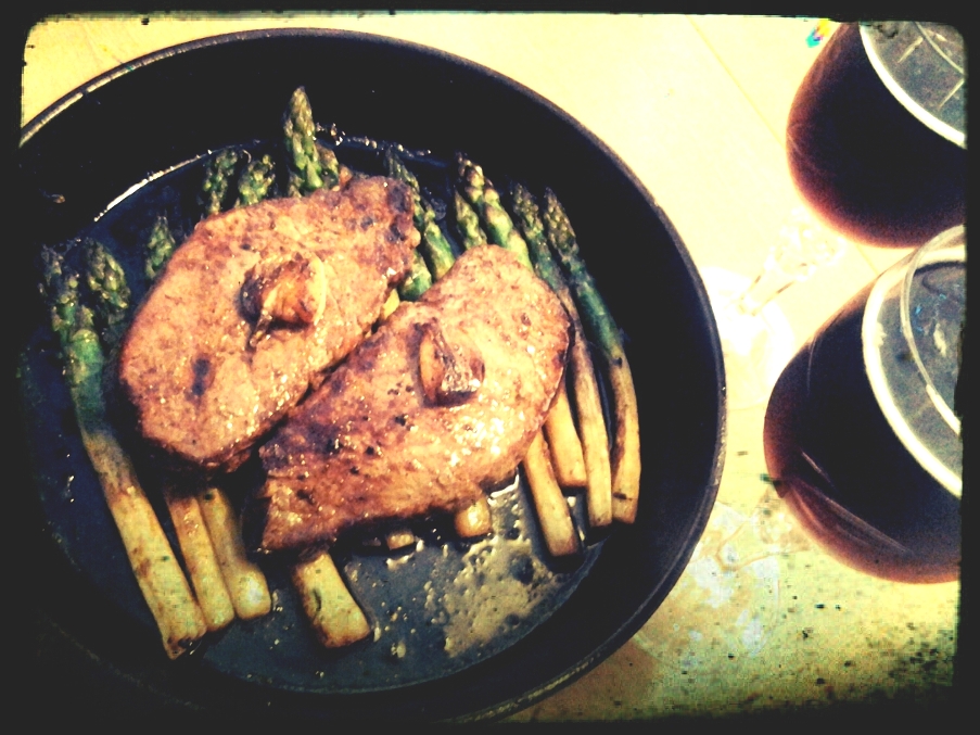 Soosiksi riittää rasvat pannulta, varsinainen voikastike, jossa kaikki maut ovat: voi, lihasnesteet, valkosipulit, suolat, pippurit, yrtit ja parsat. Kaveriksi sopii hienosti esimerkiksi Paavin Polku, Amerikan Serkku tai Metsän Henki.